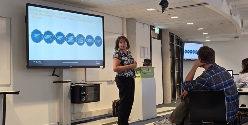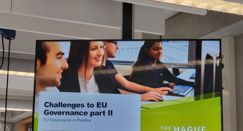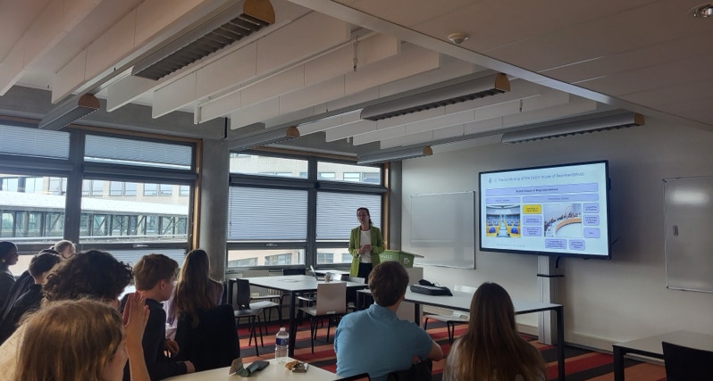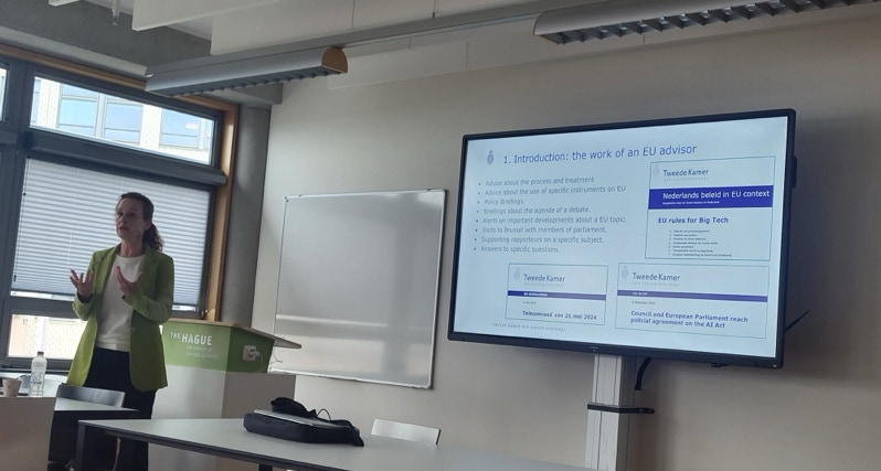 dr. Mendeltje van Keulen giving a lecture to students in The Hague University of Applied Sciences in the Hague about EU governance (June 2024)