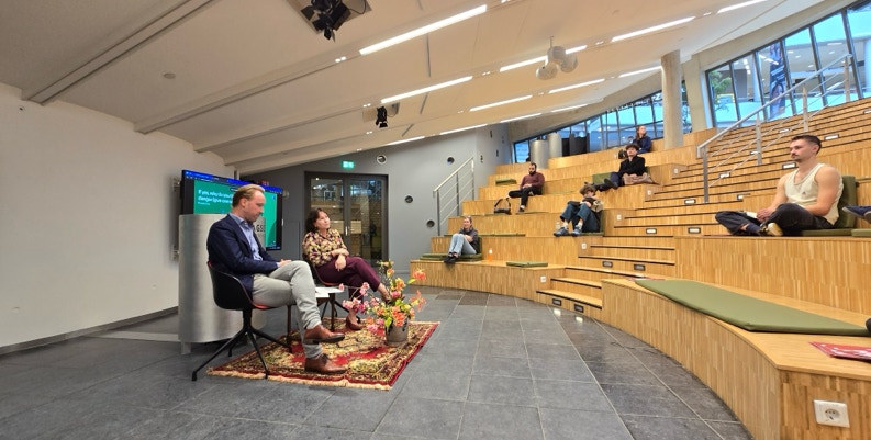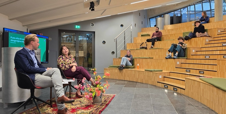dr. Mendeltje van Keulen and Diederik Brink giving a guest lecture to students at The Hague University of Applied Sciences. During the guest lecture, Mendeltje and Diederik debated on what are some of the dangers posed to democracy from two points of view: Diederik presented the American perspective and connected it with the US elections, whereas Mendeltje presented the European perspective. The effect of disinformation on digital platforms was discussed, starting a further debate on the impact of the Digital Services Act. (September 2024)